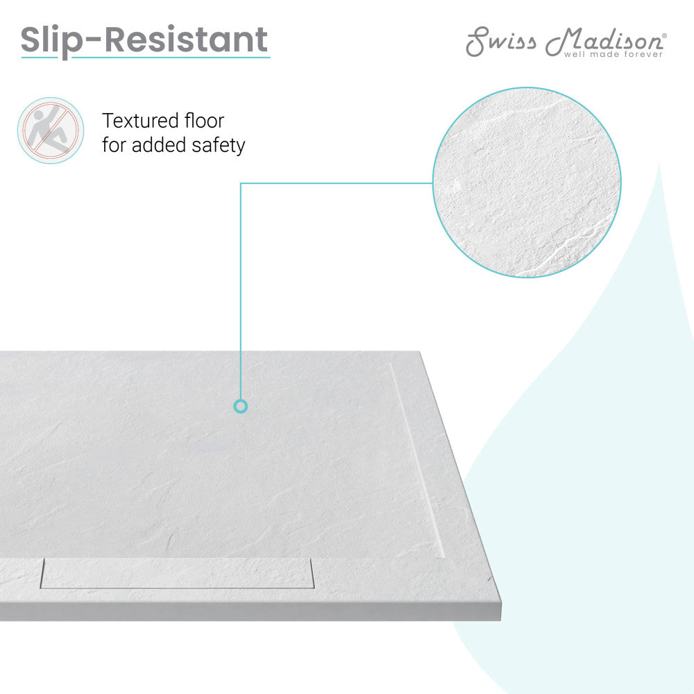 Explore the rich contrast of Terre C collection, where contemporary forms and natural textures create visual intrigue. Elevate your shower experience with our sleek and sturdy shower bases designed for durability and functionality. Offered in white with a matte finish.