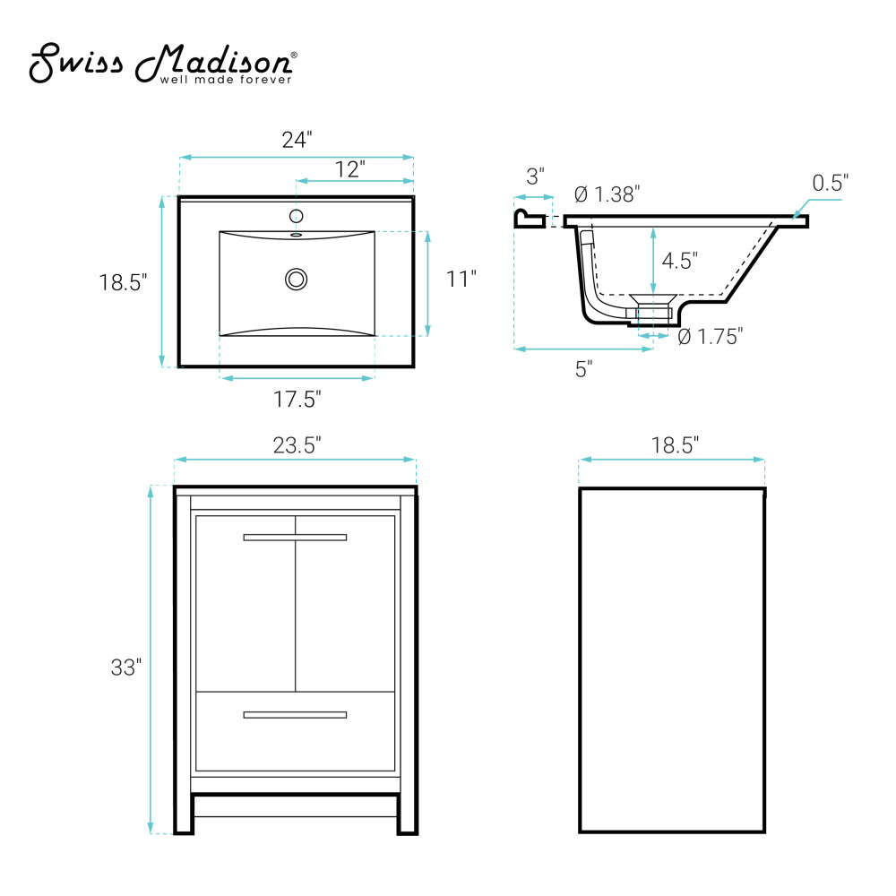 - Configuration: Vanities offering two soft closing doors and one drawer enhances your space with slam-free technology, additional storage space and creates an upscale appearance.