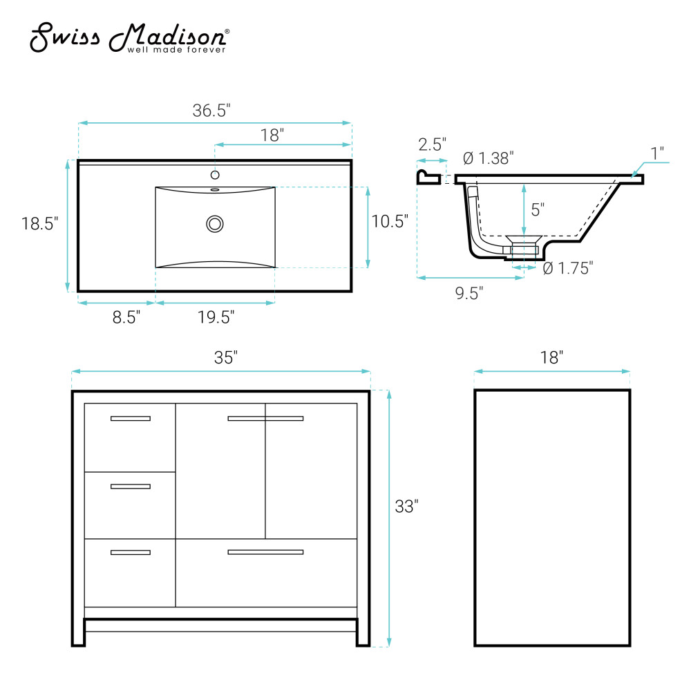 - Configuration: Vanities offering two soft closing doors and four drawers enhances your space with slam-free technology, additional storage space and creates an upscale appearance.