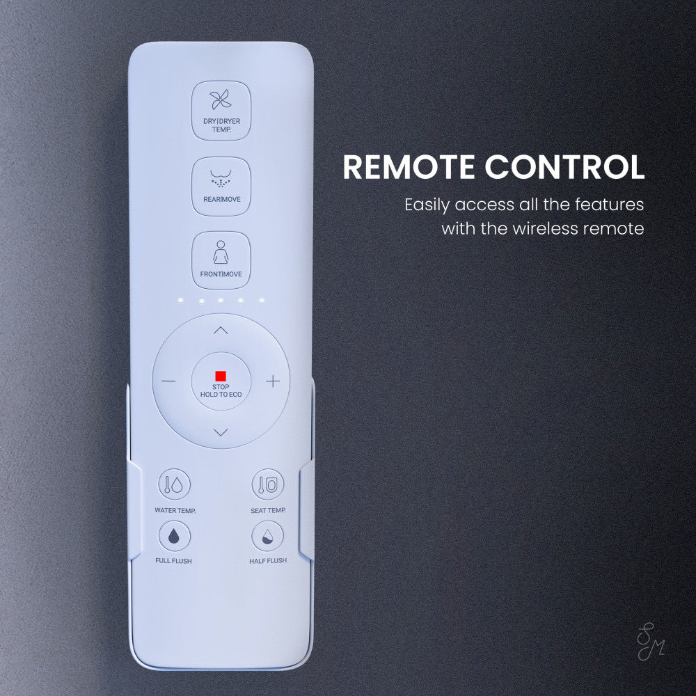 - Remote and Side Control Options: Full remote control and an integrated side panel to conveniently operate the flush and manage bidet functions directly from the side of the seat