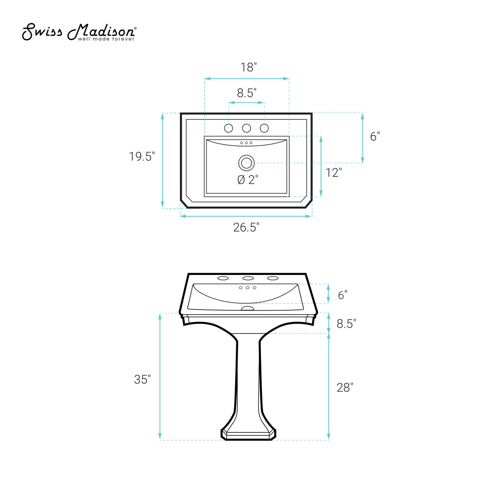 Embrace timeless elegance with the Voltaire collection, fusing classic charm with contemporary comfort. Infuse your bathroom with timeless grace with a pedestal sink, capturing a sense of classic elegance that never goes out of style. Offered in white with a glossy finish.