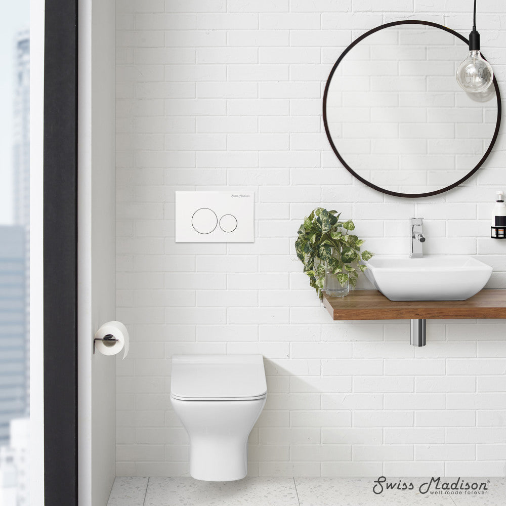 Discover intricate precision and design excellence in the Swiss Madison collection, redefining contemporary bathroom aesthetics. Wall Actuators provides a refined style for your back-to-wall and wall mounted toilets. Offered in white.